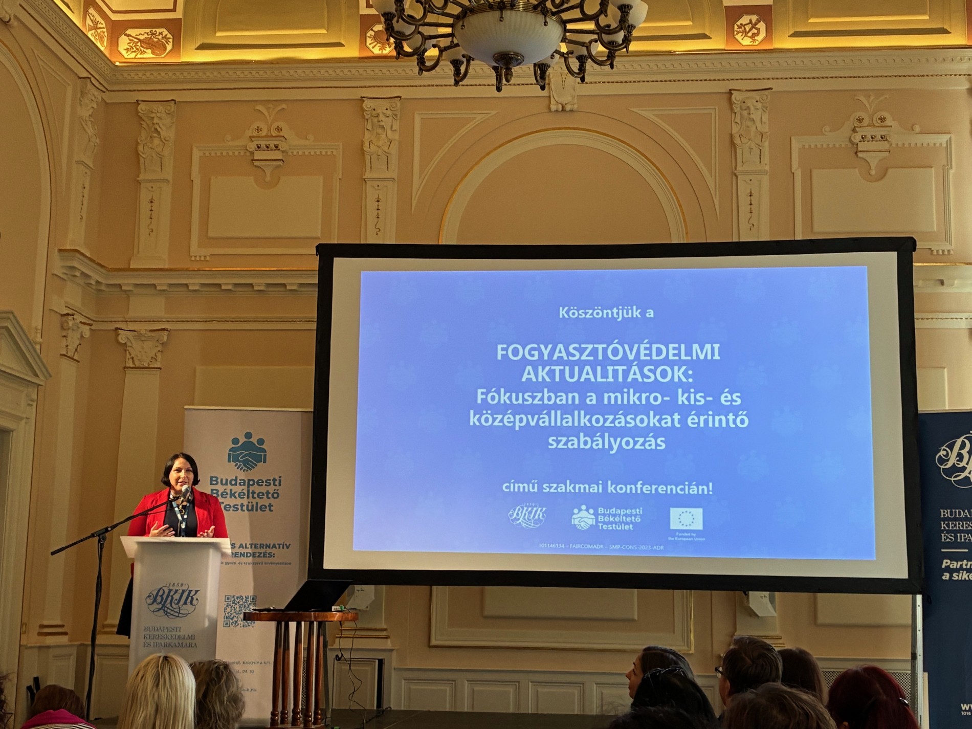 A FAIRCOMADR európai uniós projekt záróeseményeként a Budapesti Kereskedelmi és Iparkamara (BKIK) és a Budapesti Békéltető Testület (BBT) által közösen megrendezett szakmai konferencia középpontjában a fogyasztóvédelem, a békéltetés, valamint a mikro-, kis- és középvállalkozásokat érintő szabályozási környezet aktuális kérdései álltak.